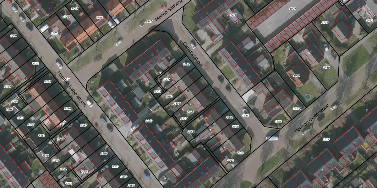 Gebruik de zoekbalk of klik op een perceel voor informatie over de adressen binnen dit perceel.