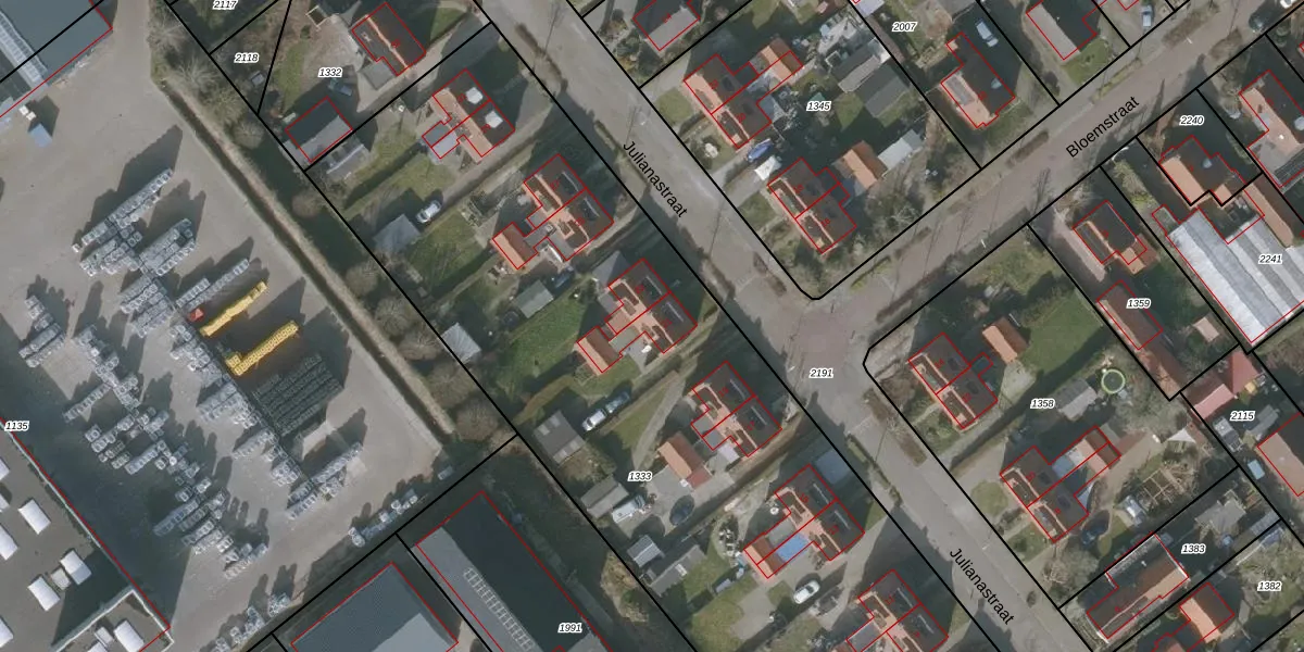 Julianastraat 21 is gelegen op kadastraal perceel BAL00A1333. Deze kadastrale aanduiding is uniek en wordt gebruikt door het Kadaster om eigendomsrechten en andere zakelijke rechten vast te leggen. Het perceel maakt onderdeel uit van de kadastrale gemeente Balk.