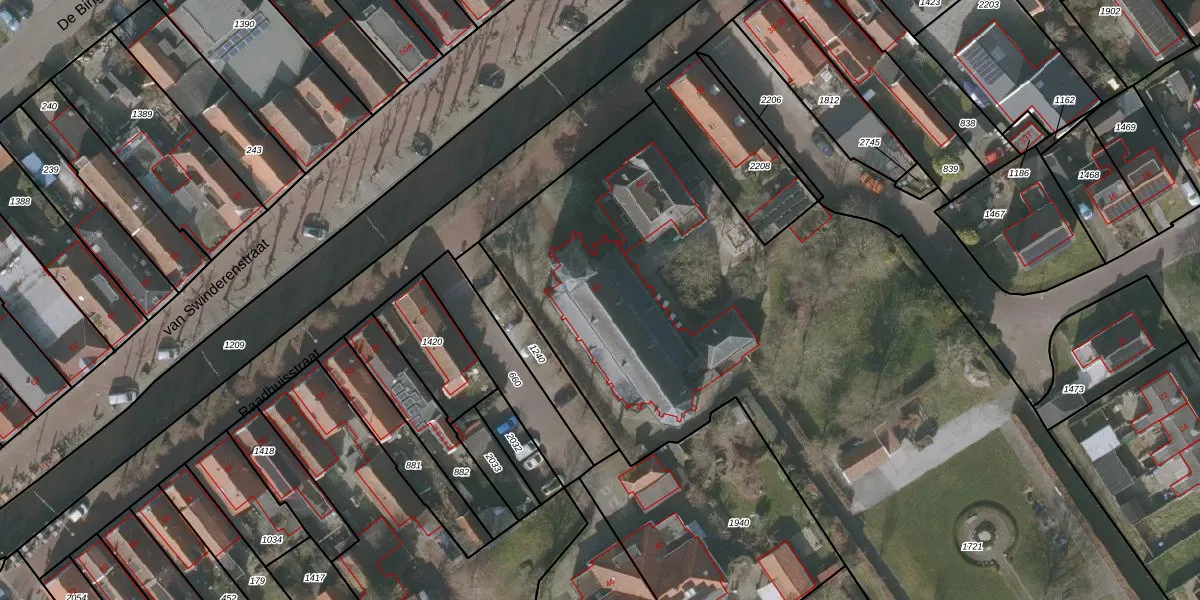 Het perceel waarop Raadhuisstraat 43 staat heeft een oppervlakte van 7661 m². Dit is een zeer groot perceel. De perceeloppervlakte wordt geregistreerd door het Kadaster. Gedetailleerde informatie over de maten van dit perceel kunt u vinden in het rapport Kadastrale kaart met maatvoering van Raadhuisstraat 43.