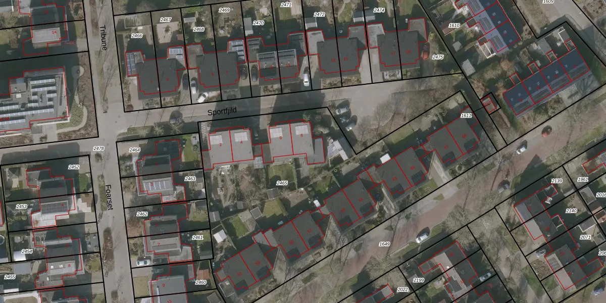Het perceel waarop Sportfjild 8 staat heeft een oppervlakte van 3772 m². Dit is een zeer groot perceel. De perceeloppervlakte wordt geregistreerd door het Kadaster. Gedetailleerde informatie over de maten van dit perceel kunt u vinden in het rapport Kadastrale kaart met maatvoering van Sportfjild 8.