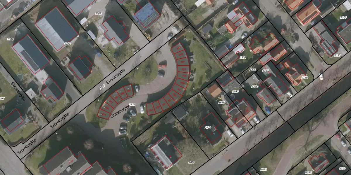 Het perceel waarop Suvelstrjitte 38-L staat heeft een oppervlakte van 5855 m². Dit is een zeer groot perceel. De perceeloppervlakte wordt geregistreerd door het Kadaster. Gedetailleerde informatie over de maten van dit perceel kunt u vinden in het rapport Kadastrale kaart met maatvoering van Suvelstrjitte 38-L.