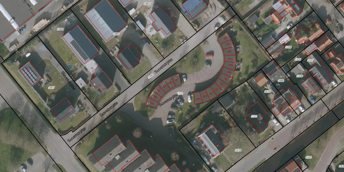 Het perceel waarop Suvelstrjitte 38-E staat heeft een oppervlakte van 5855 m². Dit is een zeer groot perceel. De perceeloppervlakte wordt geregistreerd door het Kadaster. Gedetailleerde informatie over de maten van dit perceel kunt u vinden in het rapport Kadastrale kaart met maatvoering van Suvelstrjitte 38-E.