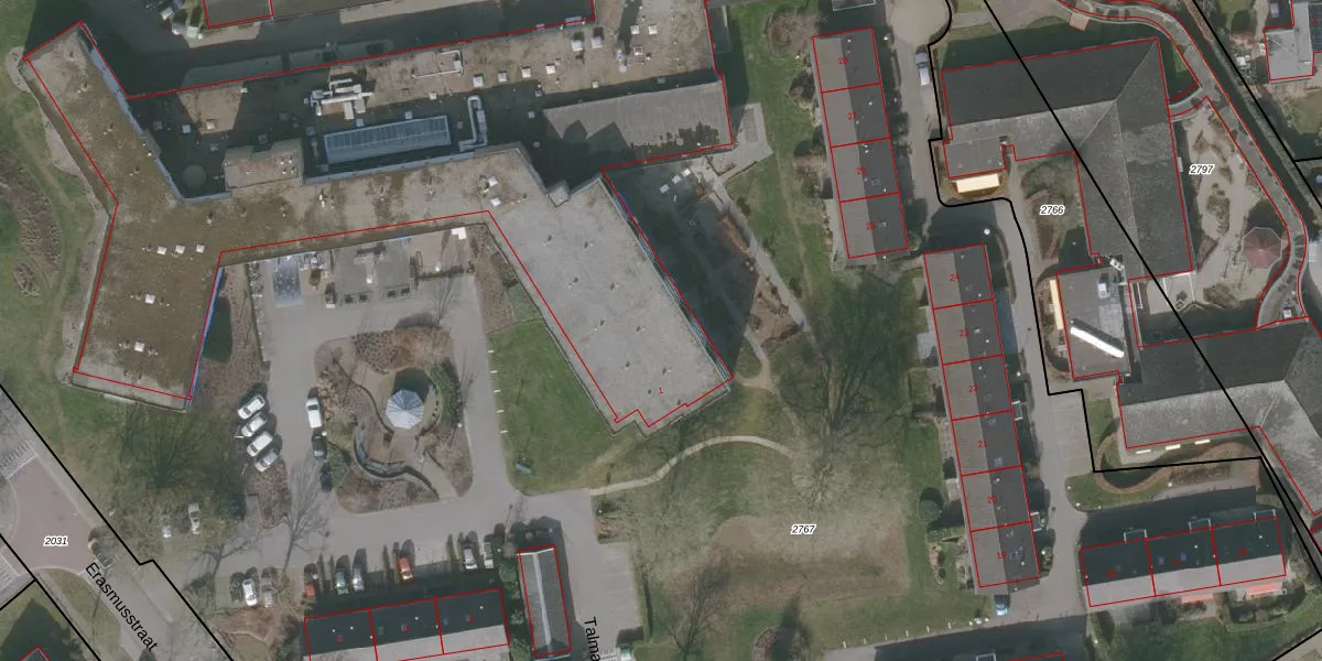 Het perceel waarop Talma Park 1-121 staat heeft een oppervlakte van 2,6 ha. Dit is een zeer groot perceel. De perceeloppervlakte wordt geregistreerd door het Kadaster. Gedetailleerde informatie over de maten van dit perceel kunt u vinden in het rapport Kadastrale kaart met maatvoering van Talma Park 1-121.