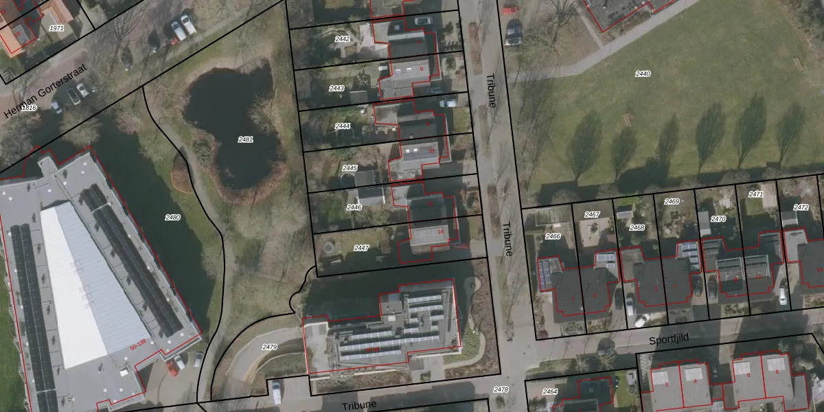 Gebruik de zoekbalk of klik op een perceel voor informatie over de adressen binnen dit perceel.