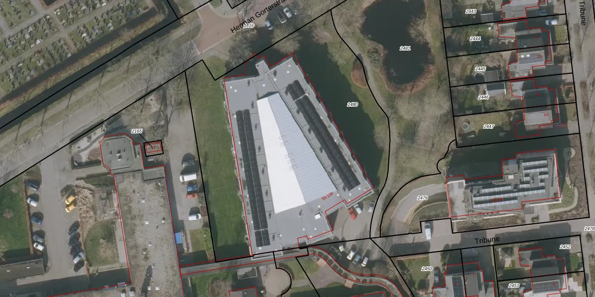 Het perceel waarop Tribune 122 staat heeft een oppervlakte van 4090 m². Dit is een zeer groot perceel. De perceeloppervlakte wordt geregistreerd door het Kadaster. Gedetailleerde informatie over de maten van dit perceel kunt u vinden in het rapport Kadastrale kaart met maatvoering van Tribune 122.