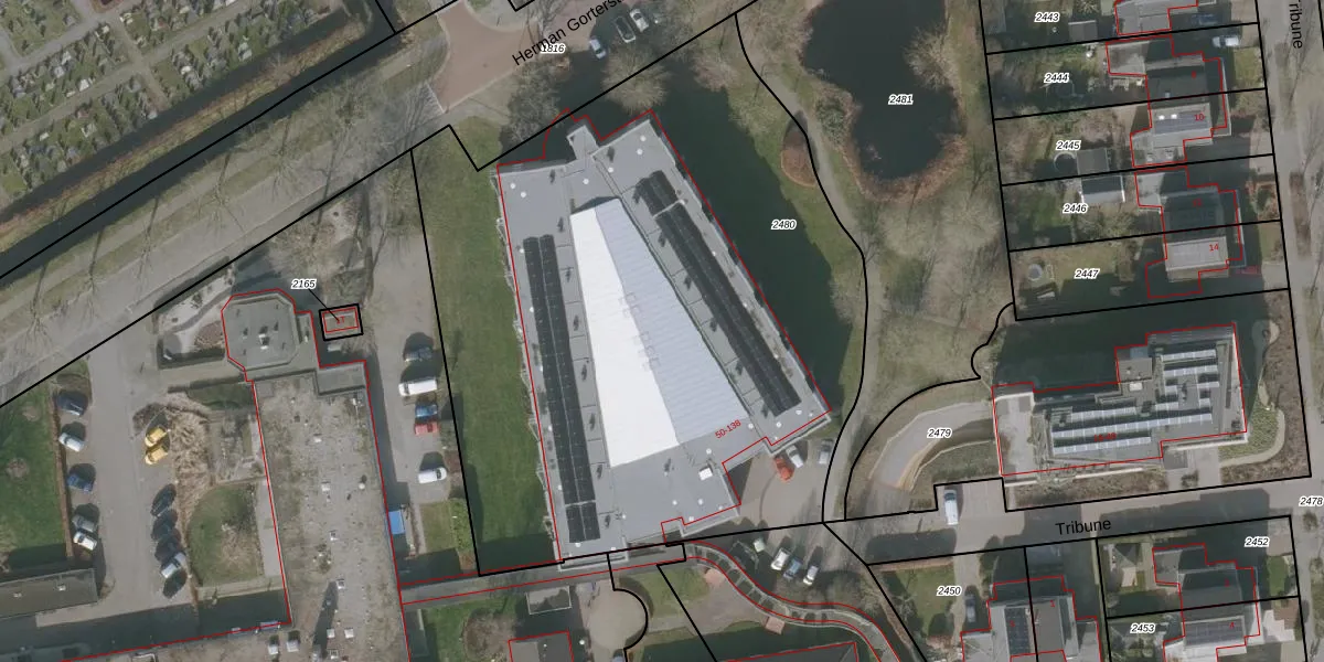 Het perceel waarop Tribune 124 staat heeft een oppervlakte van 4090 m². Dit is een zeer groot perceel. De perceeloppervlakte wordt geregistreerd door het Kadaster. Gedetailleerde informatie over de maten van dit perceel kunt u vinden in het rapport Kadastrale kaart met maatvoering van Tribune 124.