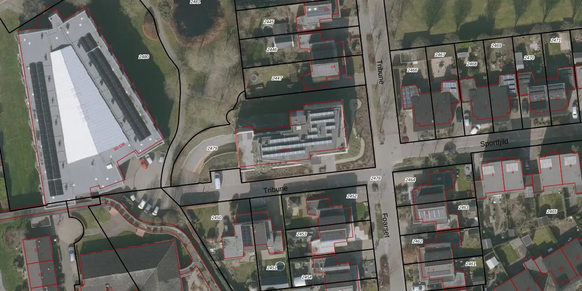 Het perceel waarop Tribune 22 staat heeft een oppervlakte van 1670 m². Dit is een zeer groot perceel. De perceeloppervlakte wordt geregistreerd door het Kadaster. Gedetailleerde informatie over de maten van dit perceel kunt u vinden in het rapport Kadastrale kaart met maatvoering van Tribune 22.