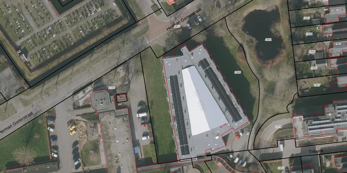 Het perceel waarop Tribune 54 staat heeft een oppervlakte van 4090 m². Dit is een zeer groot perceel. De perceeloppervlakte wordt geregistreerd door het Kadaster. Gedetailleerde informatie over de maten van dit perceel kunt u vinden in het rapport Kadastrale kaart met maatvoering van Tribune 54.