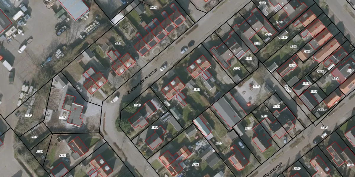 Het perceel waarop Zuidwesthoekstraat 13 staat heeft een oppervlakte van 1173 m². Dit is een zeer groot perceel. De perceeloppervlakte wordt geregistreerd door het Kadaster. Gedetailleerde informatie over de maten van dit perceel kunt u vinden in het rapport Kadastrale kaart met maatvoering van Zuidwesthoekstraat 13.