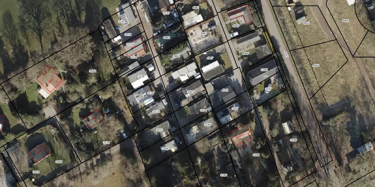 Gebruik de zoekbalk of klik op een perceel voor informatie over de adressen binnen dit perceel.