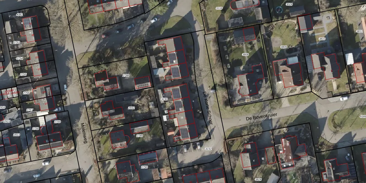 Het perceel waarop De Korte Schoor 7 staat heeft een oppervlakte van 1415 m². Dit is een zeer groot perceel. De perceeloppervlakte wordt geregistreerd door het Kadaster. Gedetailleerde informatie over de maten van dit perceel kunt u vinden in het rapport Kadastrale kaart met maatvoering van De Korte Schoor 7.