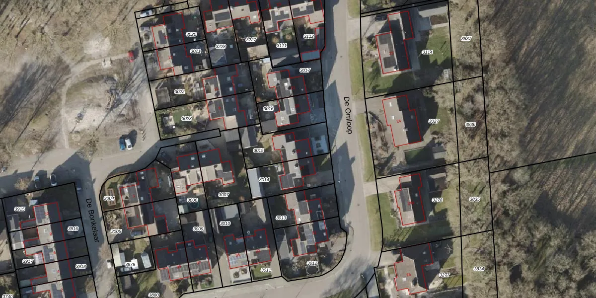 Het perceel waarop De Omloop 25 staat heeft een oppervlakte van 322 m². Dit is een groot perceel. De perceeloppervlakte wordt geregistreerd door het Kadaster. Gedetailleerde informatie over de maten van dit perceel kunt u vinden in het rapport Kadastrale kaart met maatvoering van De Omloop 25.