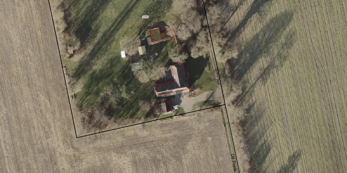 Het perceel waarop De Poele 2 staat heeft een oppervlakte van 1,1 ha. Dit is een zeer groot perceel. De perceeloppervlakte wordt geregistreerd door het Kadaster. Gedetailleerde informatie over de maten van dit perceel kunt u vinden in het rapport Kadastrale kaart met maatvoering van De Poele 2.