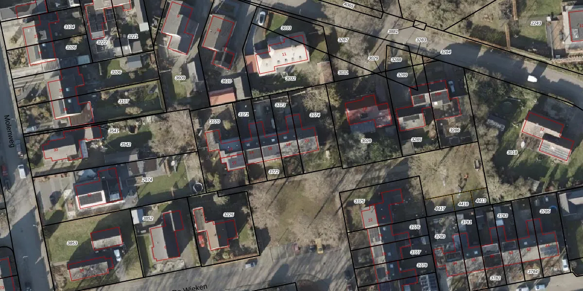 Het perceel waarop De Wieken 18 staat heeft een oppervlakte van 182 m². Dit is een middelgroot perceel. De perceeloppervlakte wordt geregistreerd door het Kadaster. Gedetailleerde informatie over de maten van dit perceel kunt u vinden in het rapport Kadastrale kaart met maatvoering van De Wieken 18.