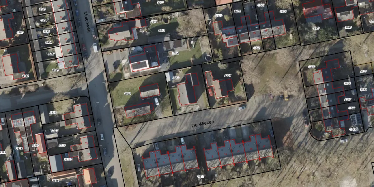 Het perceel waarop De Wieken 6 staat heeft een oppervlakte van 481 m². Dit is een groot perceel. De perceeloppervlakte wordt geregistreerd door het Kadaster. Gedetailleerde informatie over de maten van dit perceel kunt u vinden in het rapport Kadastrale kaart met maatvoering van De Wieken 6.