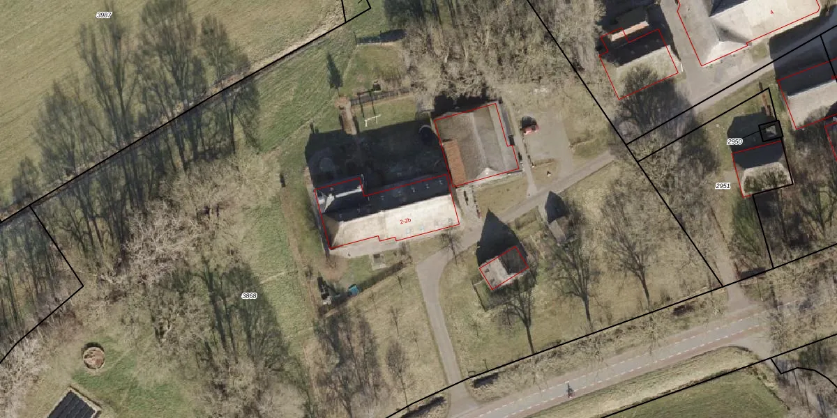 Het perceel waarop Den Kaat 2-b staat heeft een oppervlakte van 1,5 ha. Dit is een zeer groot perceel. De perceeloppervlakte wordt geregistreerd door het Kadaster. Gedetailleerde informatie over de maten van dit perceel kunt u vinden in het rapport Kadastrale kaart met maatvoering van Den Kaat 2-b.
