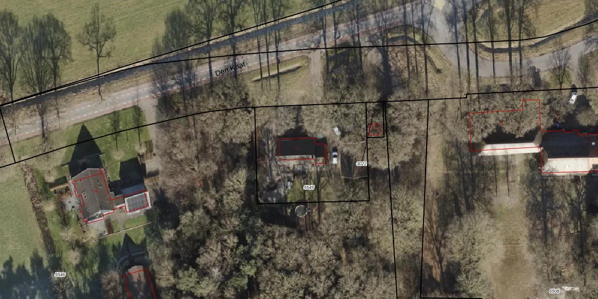 Het perceel waarop Den Kaat 9 staat heeft een oppervlakte van 1215 m². Dit is een zeer groot perceel. De perceeloppervlakte wordt geregistreerd door het Kadaster. Gedetailleerde informatie over de maten van dit perceel kunt u vinden in het rapport Kadastrale kaart met maatvoering van Den Kaat 9.