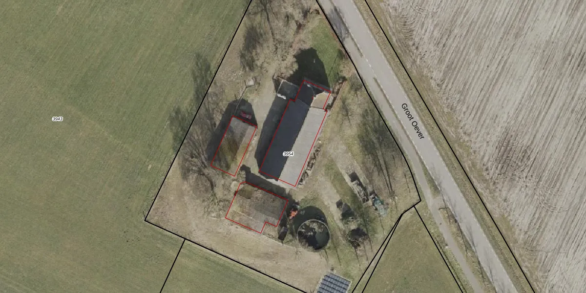 Groot Oever 1 is gelegen op kadastraal perceel AVE00F3954. Deze kadastrale aanduiding is uniek en wordt gebruikt door het Kadaster om eigendomsrechten en andere zakelijke rechten vast te leggen. Het perceel maakt onderdeel uit van de kadastrale gemeente Avereest.