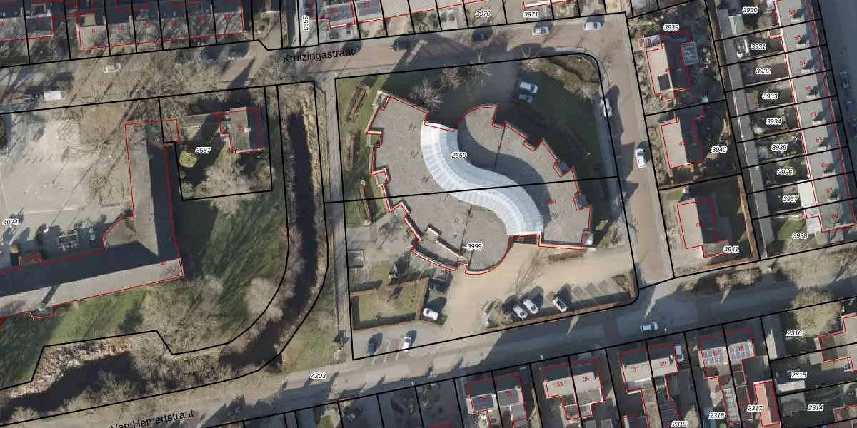 Het perceel waarop Van Hemertstraat 32 staat heeft een oppervlakte van 2210 m². Dit is een zeer groot perceel. De perceeloppervlakte wordt geregistreerd door het Kadaster. Gedetailleerde informatie over de maten van dit perceel kunt u vinden in het rapport Kadastrale kaart met maatvoering van Van Hemertstraat 32.