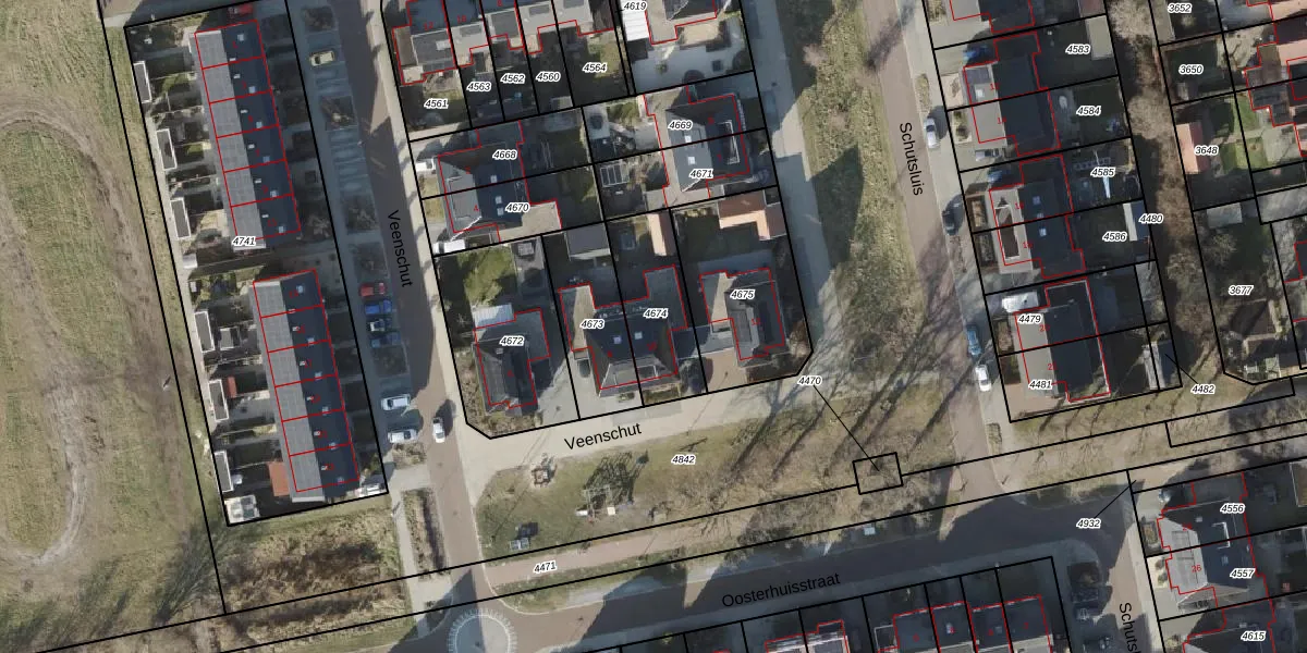 Het perceel waarop Veenschut 10 staat heeft een oppervlakte van 290 m². Dit is een middelgroot perceel. De perceeloppervlakte wordt geregistreerd door het Kadaster. Gedetailleerde informatie over de maten van dit perceel kunt u vinden in het rapport Kadastrale kaart met maatvoering van Veenschut 10.