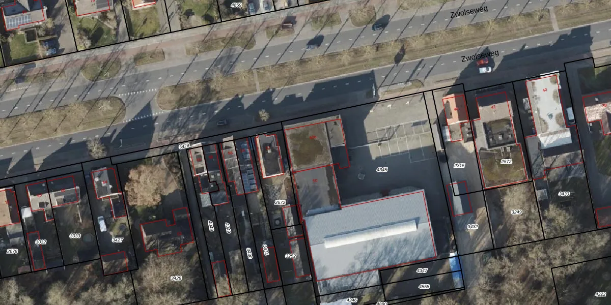 Het perceel waarop Zwolseweg 50-b staat heeft een oppervlakte van 2727 m². Dit is een zeer groot perceel. De perceeloppervlakte wordt geregistreerd door het Kadaster. Gedetailleerde informatie over de maten van dit perceel kunt u vinden in het rapport Kadastrale kaart met maatvoering van Zwolseweg 50-b.