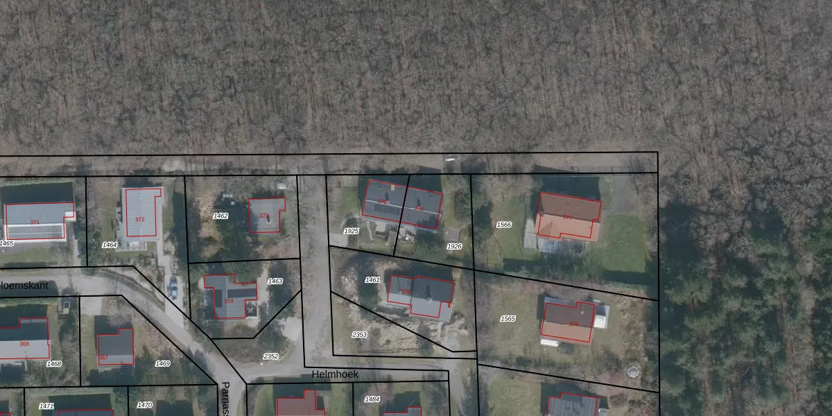Het perceel waarop Helmhoek 376 staat heeft een oppervlakte van 365 m². Dit is een groot perceel. De perceeloppervlakte wordt geregistreerd door het Kadaster. Gedetailleerde informatie over de maten van dit perceel kunt u vinden in het rapport Kadastrale kaart met maatvoering van Helmhoek 376.