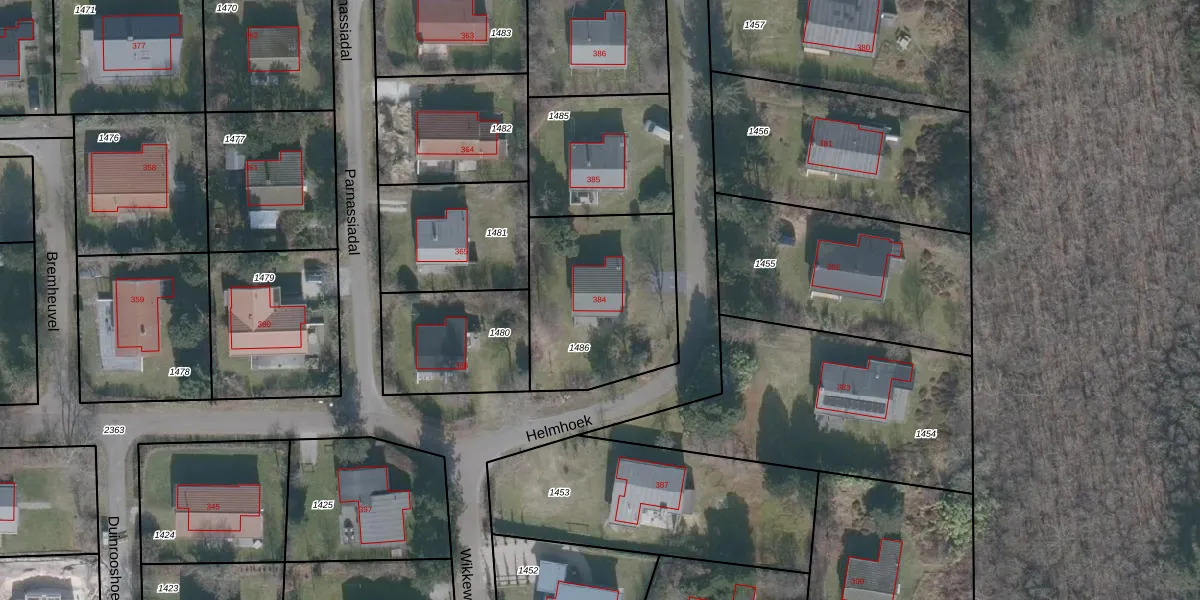 Het perceel waarop Helmhoek 384 staat heeft een oppervlakte van 682 m². Dit is een groot perceel. De perceeloppervlakte wordt geregistreerd door het Kadaster. Gedetailleerde informatie over de maten van dit perceel kunt u vinden in het rapport Kadastrale kaart met maatvoering van Helmhoek 384.