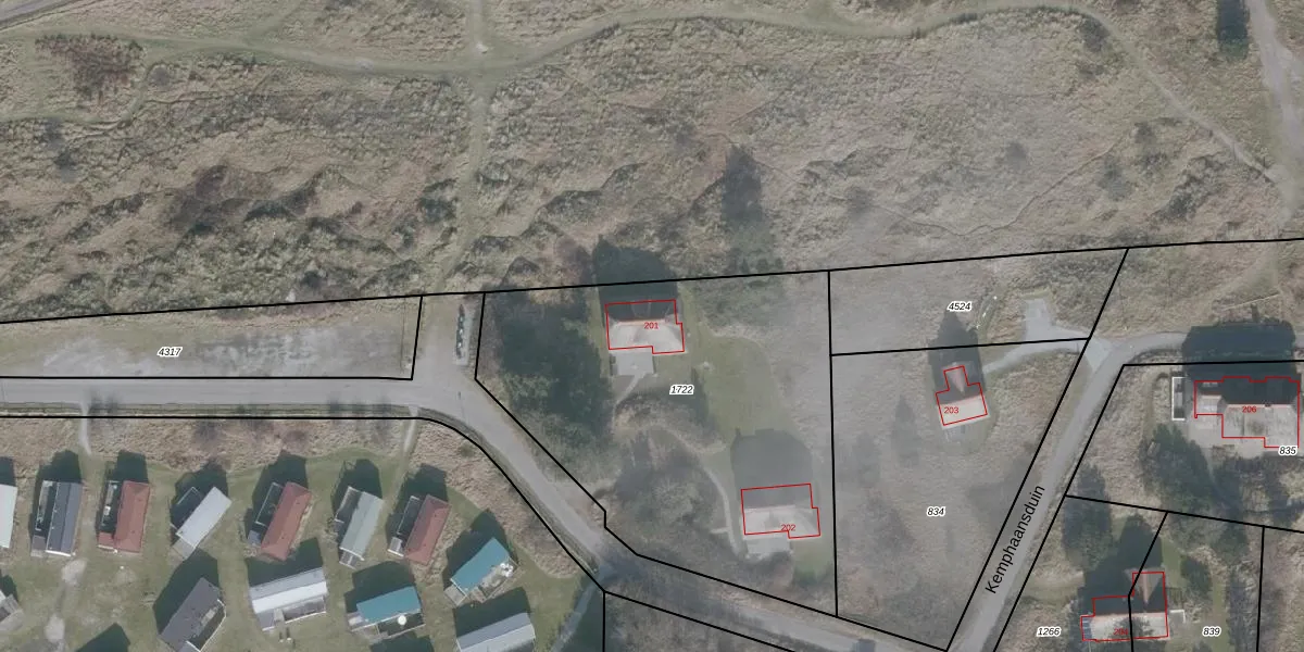 Het perceel waarop Kemphaansduin 201 staat heeft een oppervlakte van 2065 m². Dit is een zeer groot perceel. De perceeloppervlakte wordt geregistreerd door het Kadaster. Gedetailleerde informatie over de maten van dit perceel kunt u vinden in het rapport Kadastrale kaart met maatvoering van Kemphaansduin 201.