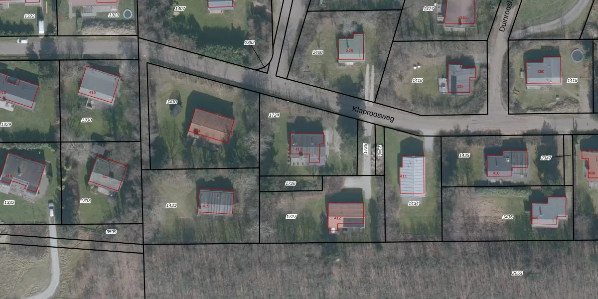 Klaproosweg 413 is gelegen op kadastraal perceel BLM00G1724. Deze kadastrale aanduiding is uniek en wordt gebruikt door het Kadaster om eigendomsrechten en andere zakelijke rechten vast te leggen. Het perceel maakt onderdeel uit van de kadastrale gemeente Ballum.