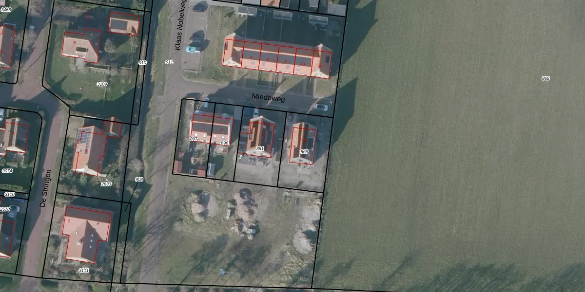 Het perceel waarop Miedeweg 7 staat heeft een oppervlakte van 416 m². Dit is een groot perceel. De perceeloppervlakte wordt geregistreerd door het Kadaster. Gedetailleerde informatie over de maten van dit perceel kunt u vinden in het rapport Kadastrale kaart met maatvoering van Miedeweg 7.