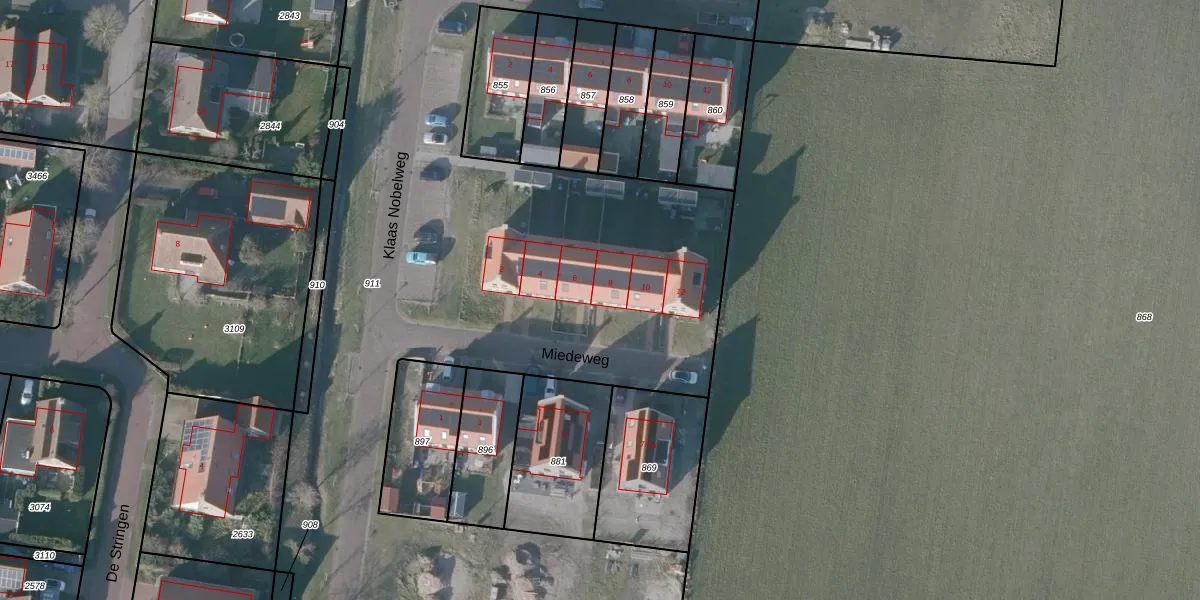 Het perceel waarop Miedeweg 8 staat heeft een oppervlakte van 6633 m². Dit is een zeer groot perceel. De perceeloppervlakte wordt geregistreerd door het Kadaster. Gedetailleerde informatie over de maten van dit perceel kunt u vinden in het rapport Kadastrale kaart met maatvoering van Miedeweg 8.