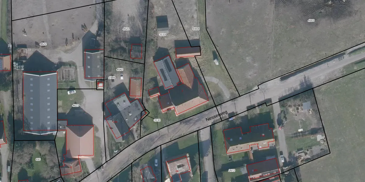 Het perceel waarop Nesserweg 2 staat heeft een oppervlakte van 1935 m². Dit is een zeer groot perceel. De perceeloppervlakte wordt geregistreerd door het Kadaster. Gedetailleerde informatie over de maten van dit perceel kunt u vinden in het rapport Kadastrale kaart met maatvoering van Nesserweg 2.