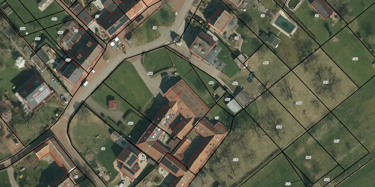 Het perceel waarop het adres ligt is MGT02-V-488. De afkorting 'MGT02' staat voor kadastrale gemeente Margraten. De gemiddelde perceelgrootte in Margraten is 5912 m². Dit perceel is kleiner: de perceeloppervlakte bedraagt 1703 m². Het grootste perceel in de kadastrale gemeente is 34,6 ha. Het kleinste perceel heeft een oppervlakte van 0 m². Op het perceel liggen in totaal 12 adressen. De huidige grenzen van het perceel zijn digitaal in de Basisregistratie Kadaster (BRK) geregistreerd op 22-10-2009.