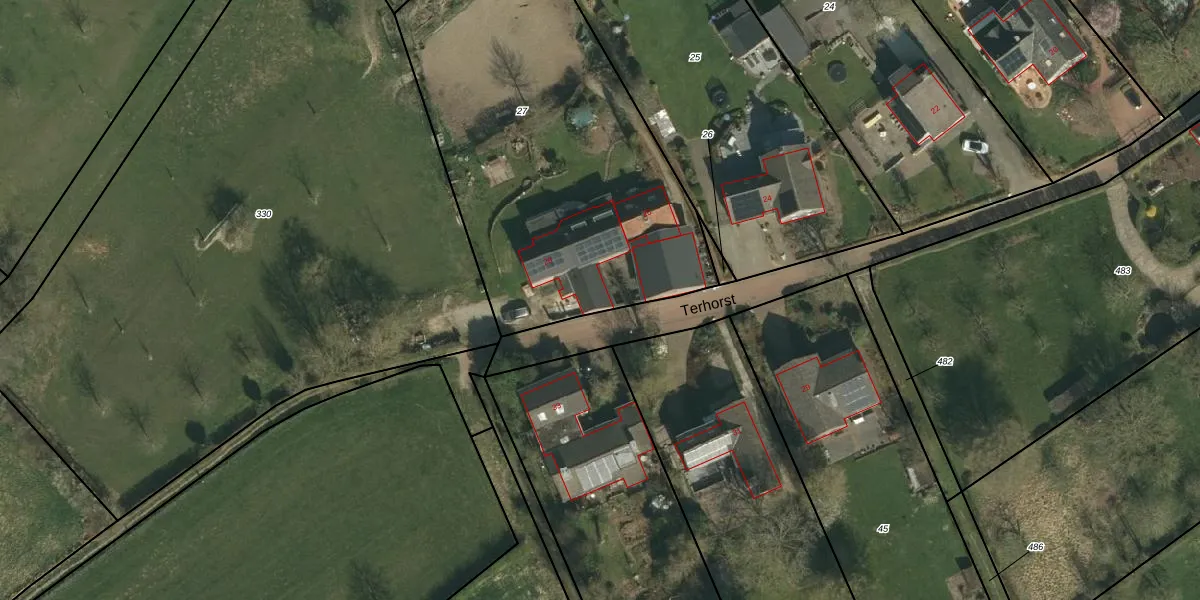 Het perceel waarop Terhorst 28 staat heeft een oppervlakte van 2110 m². Dit is een zeer groot perceel. De perceeloppervlakte wordt geregistreerd door het Kadaster. Gedetailleerde informatie over de maten van dit perceel kunt u vinden in het rapport Kadastrale kaart met maatvoering van Terhorst 28.