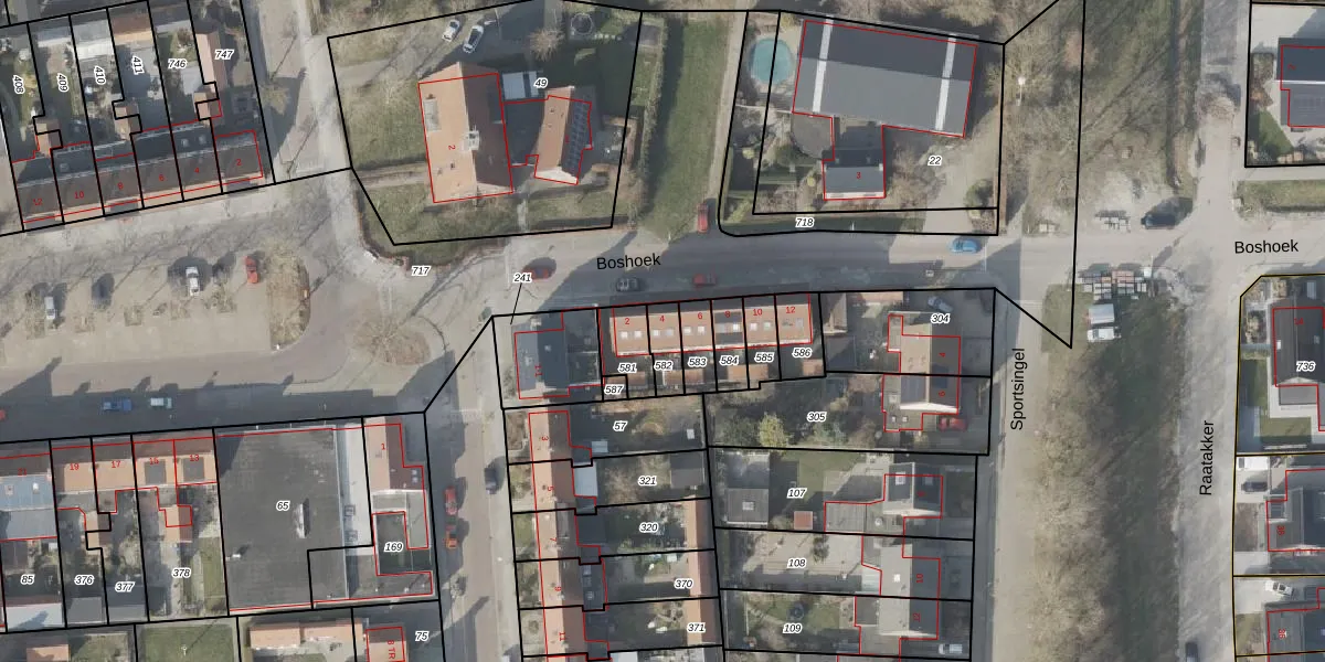 Gebruik de zoekbalk of klik op een perceel voor informatie over de adressen binnen dit perceel.