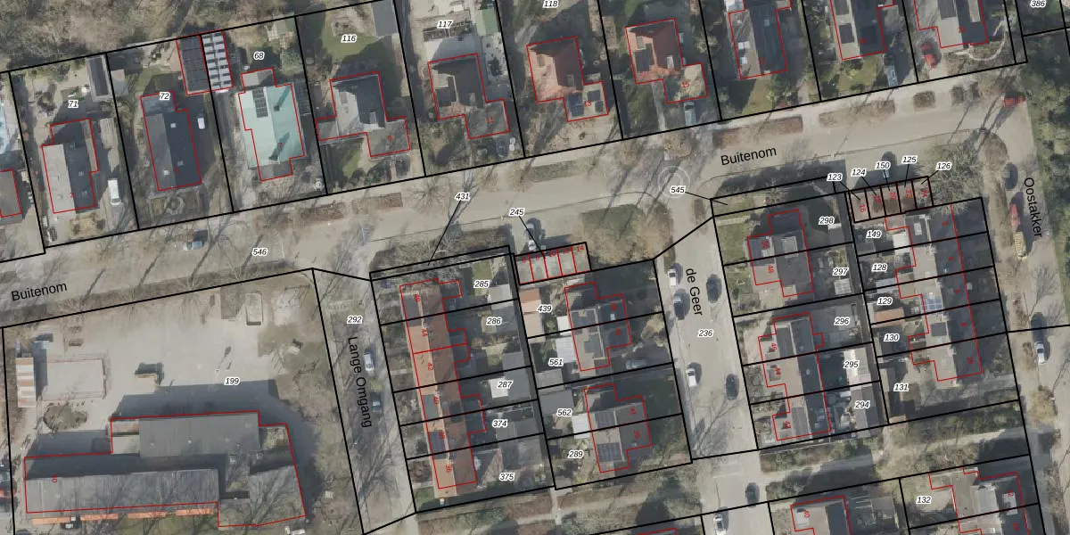 Het perceel waarop Buitenom 8 staat heeft een oppervlakte van 78 m². Dit is een klein perceel. De perceeloppervlakte wordt geregistreerd door het Kadaster. Gedetailleerde informatie over de maten van dit perceel kunt u vinden in het rapport Kadastrale kaart met maatvoering van Buitenom 8.