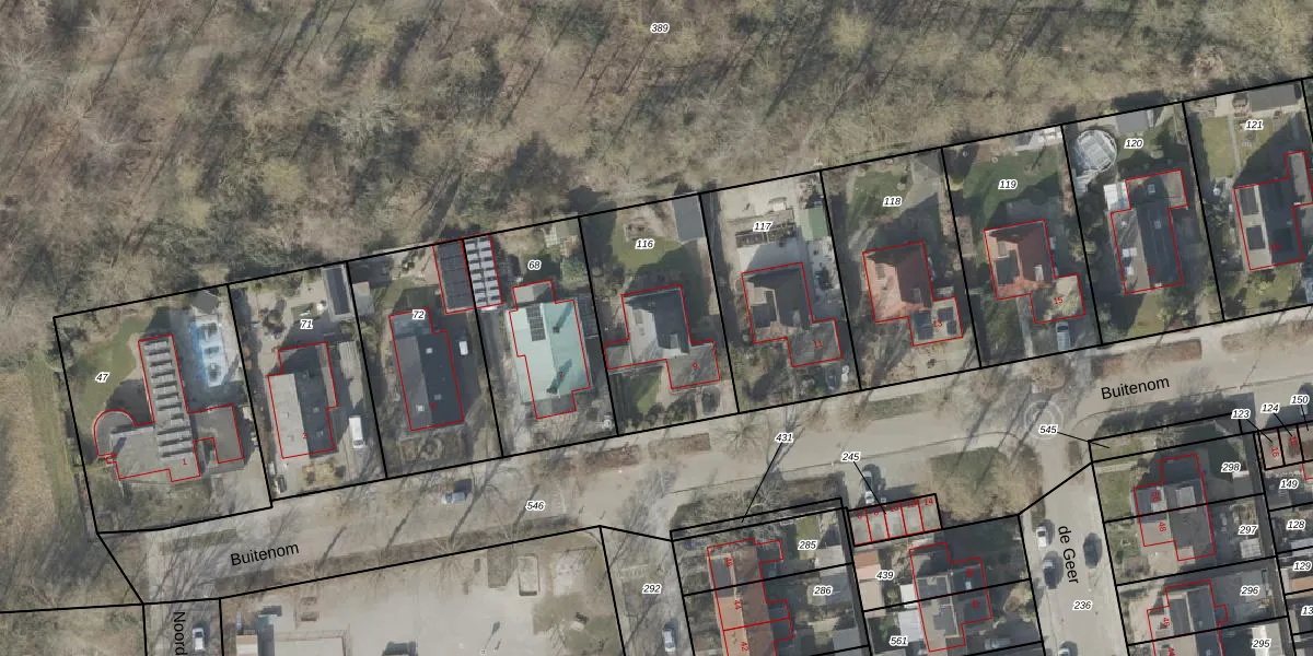 Gebruik de zoekbalk of klik op een perceel voor informatie over de adressen binnen dit perceel.