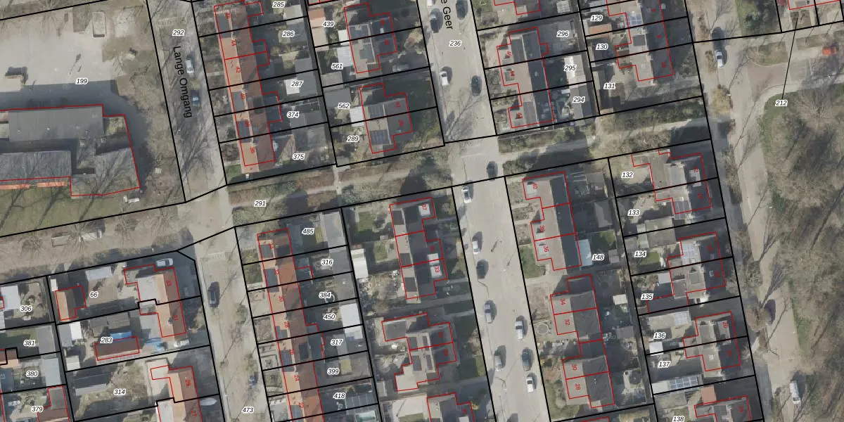 Het perceel waarop de Geer 37 staat heeft een oppervlakte van 2865 m². Dit is een zeer groot perceel. De perceeloppervlakte wordt geregistreerd door het Kadaster. Gedetailleerde informatie over de maten van dit perceel kunt u vinden in het rapport Kadastrale kaart met maatvoering van de Geer 37.