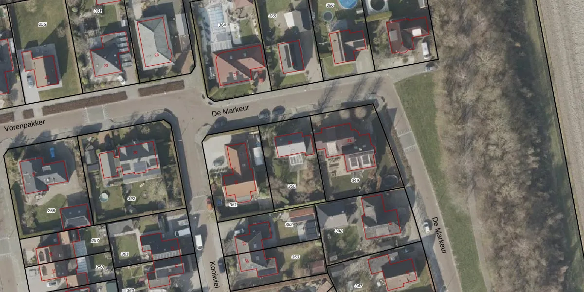 Het perceel waarop De Markeur 23 staat heeft een oppervlakte van 540 m². Dit is een groot perceel. De perceeloppervlakte wordt geregistreerd door het Kadaster. Gedetailleerde informatie over de maten van dit perceel kunt u vinden in het rapport Kadastrale kaart met maatvoering van De Markeur 23.