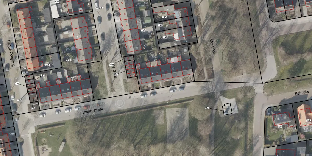 Het perceel waarop Dwarsstraat 13 staat heeft een oppervlakte van 1994 m². Dit is een zeer groot perceel. De perceeloppervlakte wordt geregistreerd door het Kadaster. Gedetailleerde informatie over de maten van dit perceel kunt u vinden in het rapport Kadastrale kaart met maatvoering van Dwarsstraat 13.