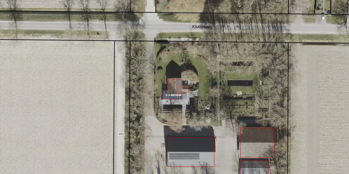 Het perceel waarop Klutenweg 5 staat heeft een oppervlakte van 8500 m². Dit is een zeer groot perceel. De perceeloppervlakte wordt geregistreerd door het Kadaster. Gedetailleerde informatie over de maten van dit perceel kunt u vinden in het rapport Kadastrale kaart met maatvoering van Klutenweg 5.