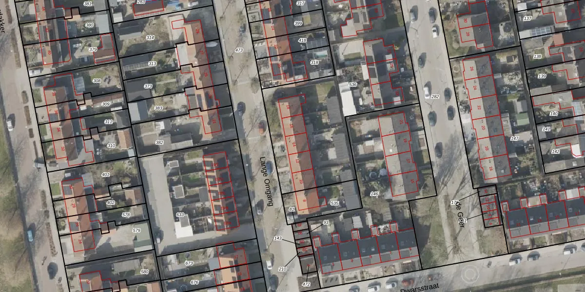Lange Omgang 14 is gelegen op kadastraal perceel NOP00FX536. Deze kadastrale aanduiding is uniek en wordt gebruikt door het Kadaster om eigendomsrechten en andere zakelijke rechten vast te leggen. Het perceel maakt onderdeel uit van de kadastrale gemeente Noordoostpolder.