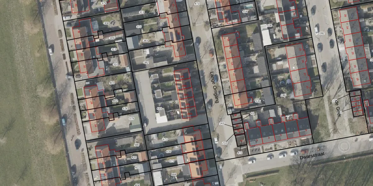 Het perceel waarop Lange Omgang 19-C staat heeft een oppervlakte van 1215 m². Dit is een zeer groot perceel. De perceeloppervlakte wordt geregistreerd door het Kadaster. Gedetailleerde informatie over de maten van dit perceel kunt u vinden in het rapport Kadastrale kaart met maatvoering van Lange Omgang 19-C.