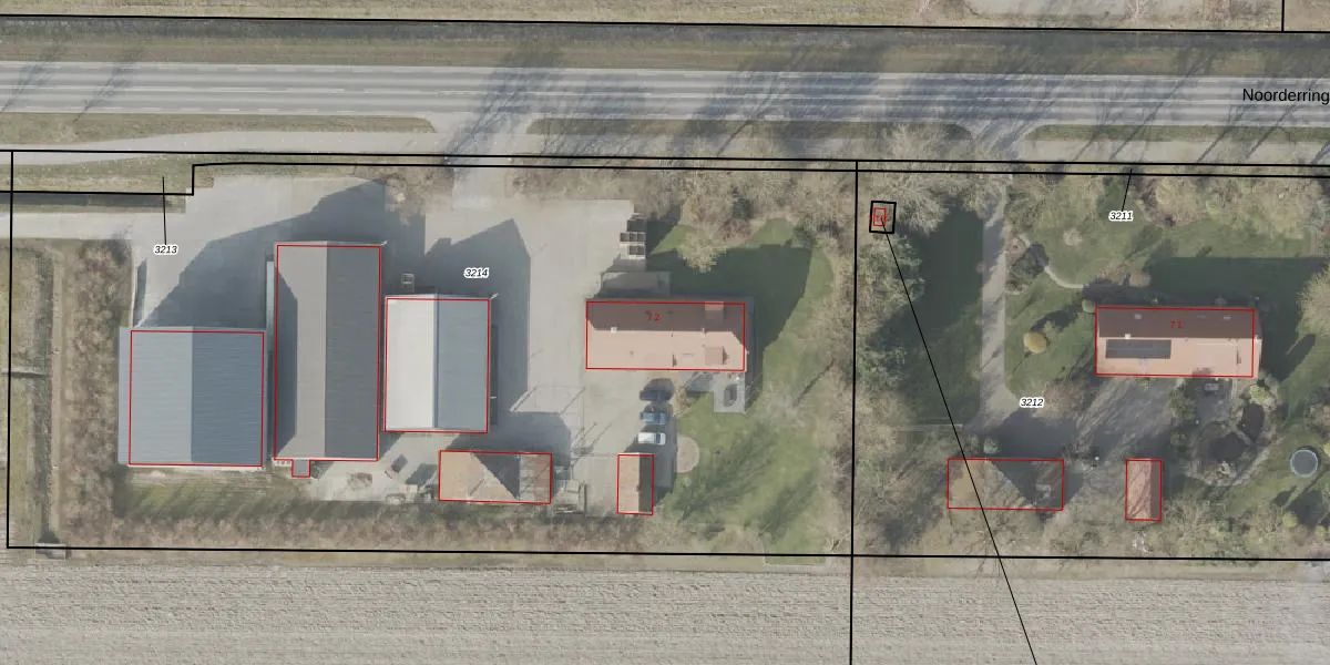 Het perceel waarop Noorderringweg 7-2 staat heeft een oppervlakte van 7249 m². Dit is een zeer groot perceel. De perceeloppervlakte wordt geregistreerd door het Kadaster. Gedetailleerde informatie over de maten van dit perceel kunt u vinden in het rapport Kadastrale kaart met maatvoering van Noorderringweg 7-2.