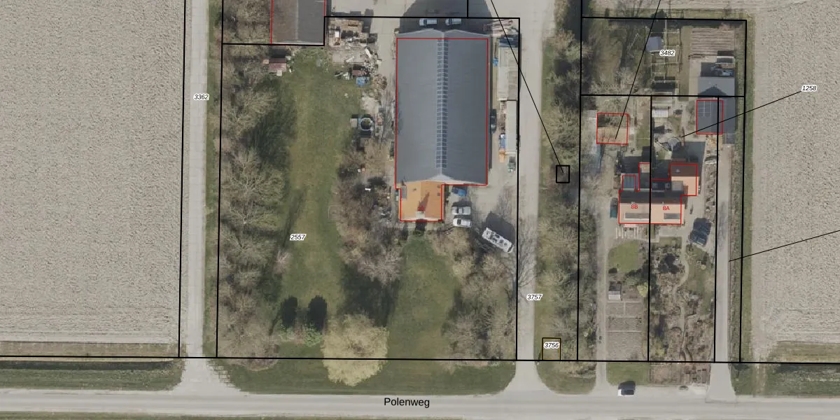 Het perceel waarop Polenweg 10 staat heeft een oppervlakte van 5620 m². Dit is een zeer groot perceel. De perceeloppervlakte wordt geregistreerd door het Kadaster. Gedetailleerde informatie over de maten van dit perceel kunt u vinden in het rapport Kadastrale kaart met maatvoering van Polenweg 10.