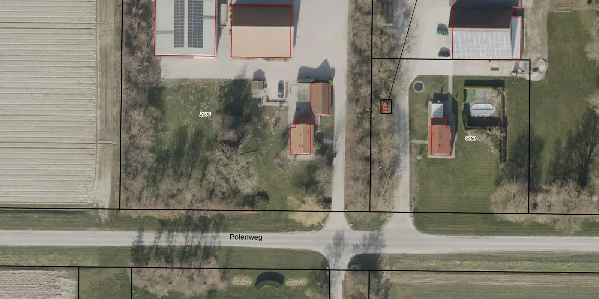 Polenweg 14 is gelegen op kadastraal perceel NOP00F2205. Deze kadastrale aanduiding is uniek en wordt gebruikt door het Kadaster om eigendomsrechten en andere zakelijke rechten vast te leggen. Het perceel maakt onderdeel uit van de kadastrale gemeente Noordoostpolder.