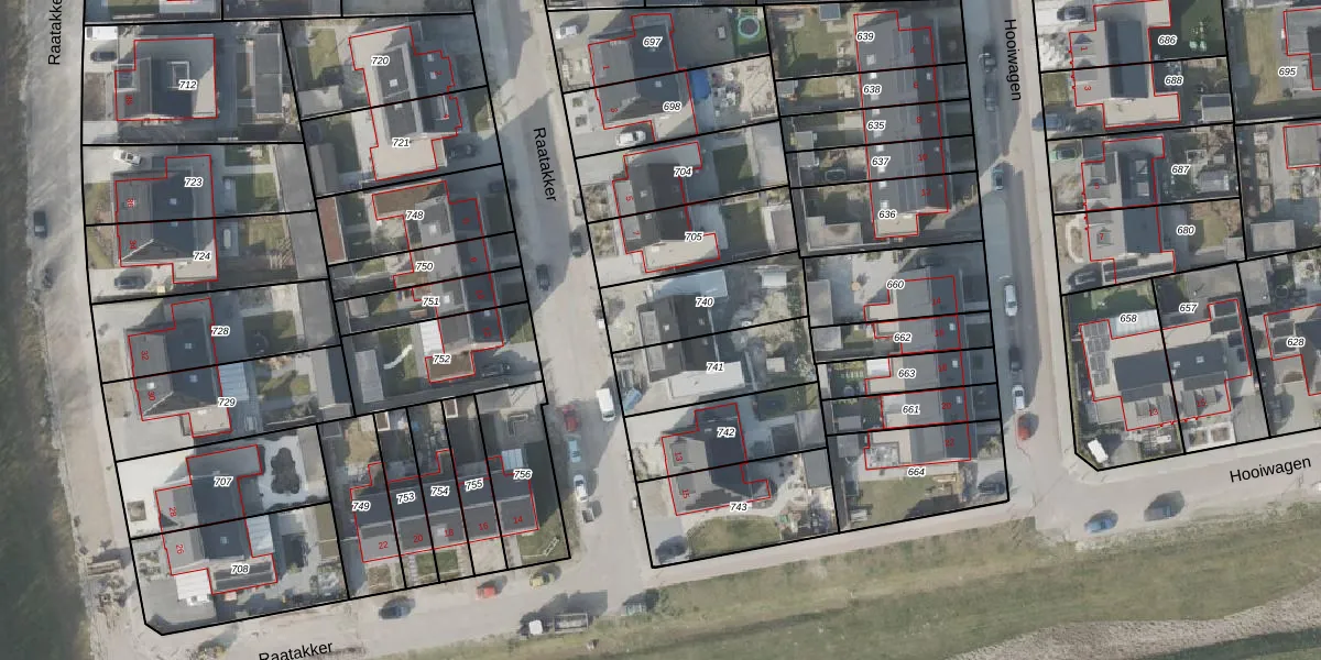 Het perceel waarop Raatakker 9 staat heeft een oppervlakte van 307 m². Dit is een groot perceel. De perceeloppervlakte wordt geregistreerd door het Kadaster. Gedetailleerde informatie over de maten van dit perceel kunt u vinden in het rapport Kadastrale kaart met maatvoering van Raatakker 9.