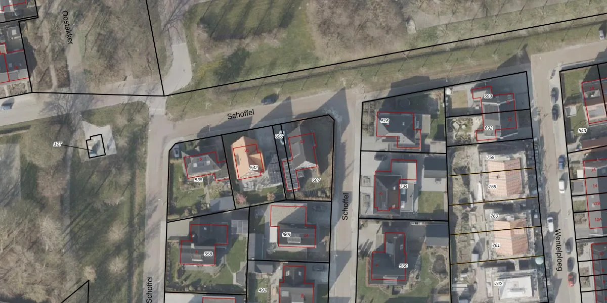 Het perceel waarop Schoffel 12 staat heeft een oppervlakte van 402 m². Dit is een groot perceel. De perceeloppervlakte wordt geregistreerd door het Kadaster. Gedetailleerde informatie over de maten van dit perceel kunt u vinden in het rapport Kadastrale kaart met maatvoering van Schoffel 12.