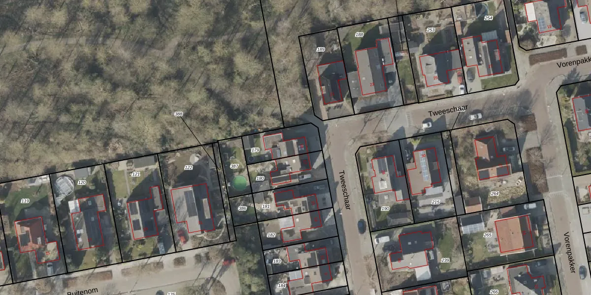 Het perceel waarop Tweeschaar 19 staat heeft een oppervlakte van 253 m². Dit is een middelgroot perceel. De perceeloppervlakte wordt geregistreerd door het Kadaster. Gedetailleerde informatie over de maten van dit perceel kunt u vinden in het rapport Kadastrale kaart met maatvoering van Tweeschaar 19.
