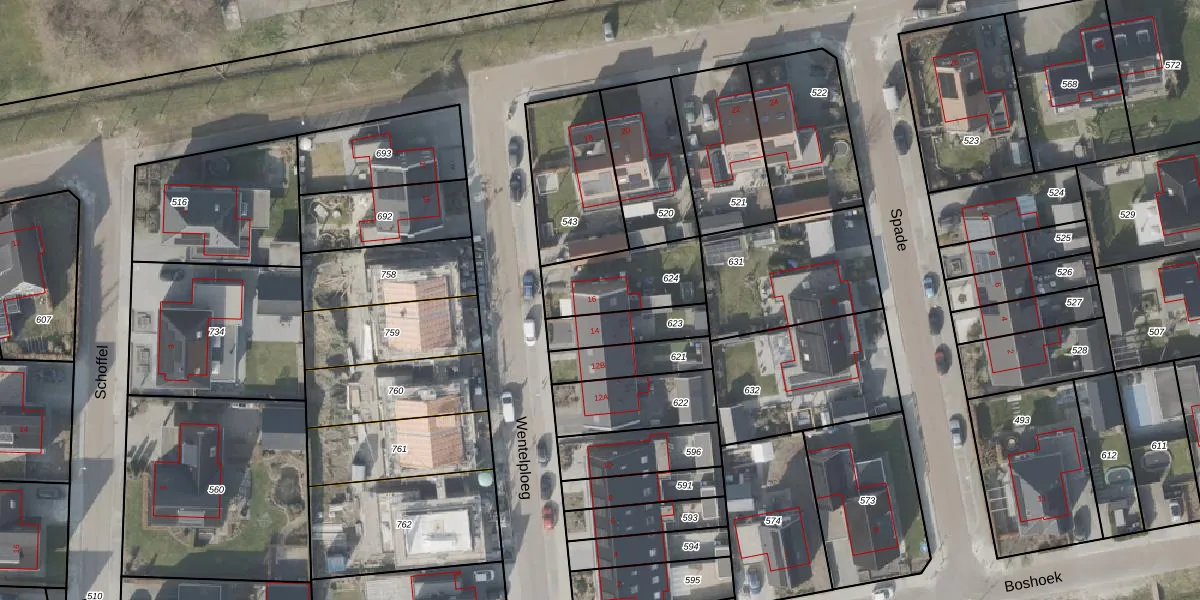 Gebruik de zoekbalk of klik op een perceel voor informatie over de adressen binnen dit perceel.